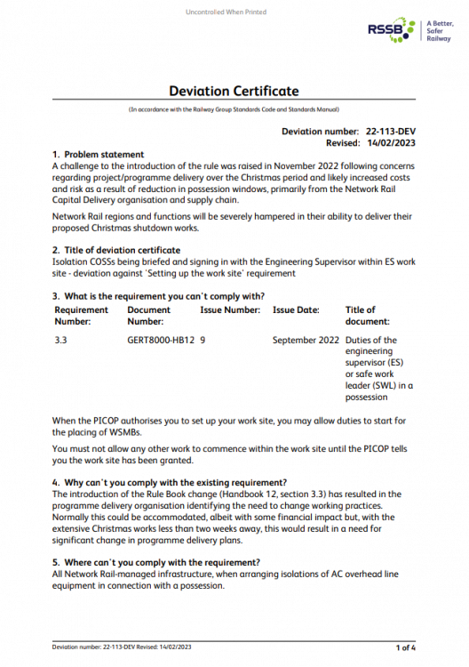A challenge to the introduction of the rule was raised in November 2022 following concerns regarding project/programme delivery over the Christmas period and likely increased costs and risk as a result of reduction in possession windows, primarily from the Network Rail Capital Delivery organisation and supply chain.